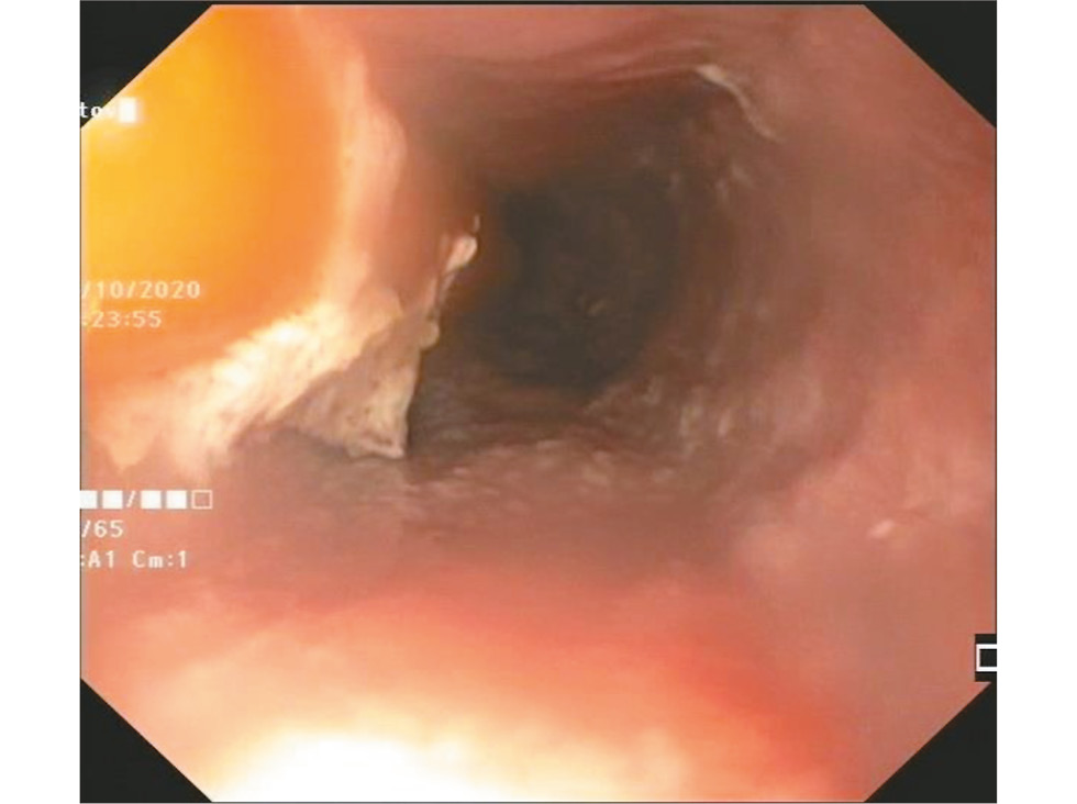 Fig. 1. Esophagogastroduodenoscopy: esophagitis and narrowing of esophagus.