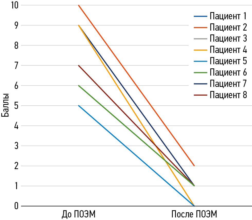 Рис. 5. Оценка по шкале Экардта: ПОЭМ — пероральная эндоскопическая миотомия.