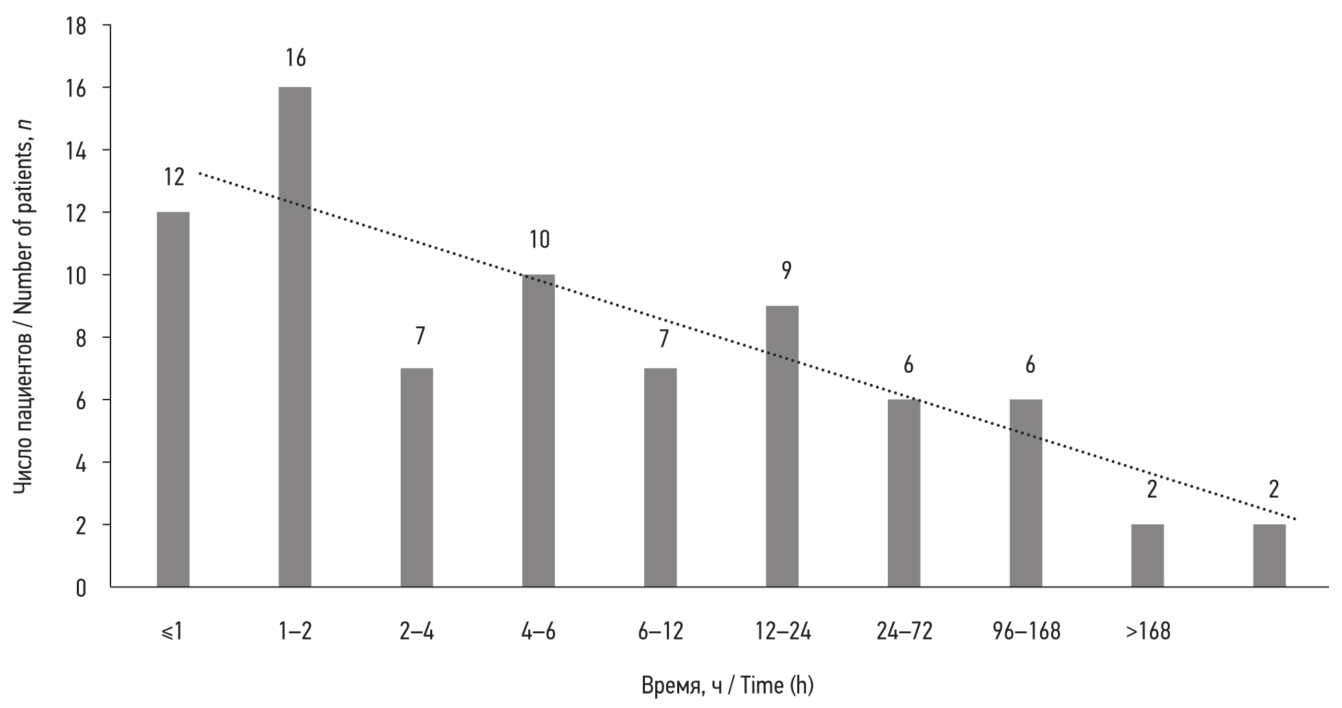 Рис. 3. Сроки поступления пациентов с магнитными инородными телами