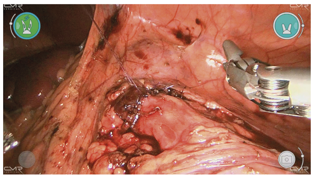 Процедура выполнена без периоперационных трудностей и осложнений. Продолжительность операции составила 135 мин, из них длительность инсталляции робота (время докинга) занимала 15 мин. Основное консольное время — 120 мин. В ходе операции не отмечено осложнений, включая интраоперационное кровотечение или повреждение соседних органов.